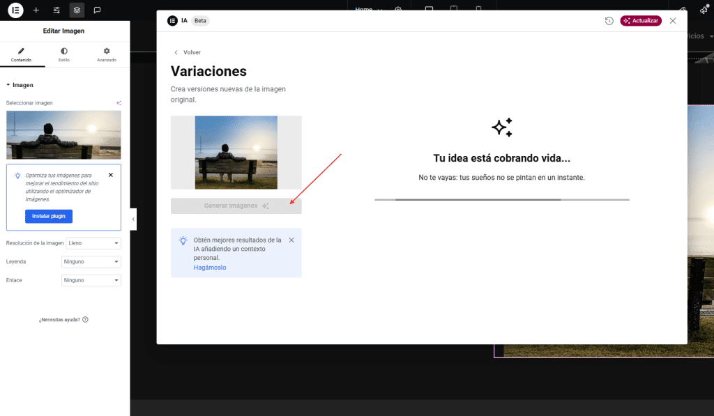 Consejos para optimizar el uso de imágenes generadas por IA con Elementor